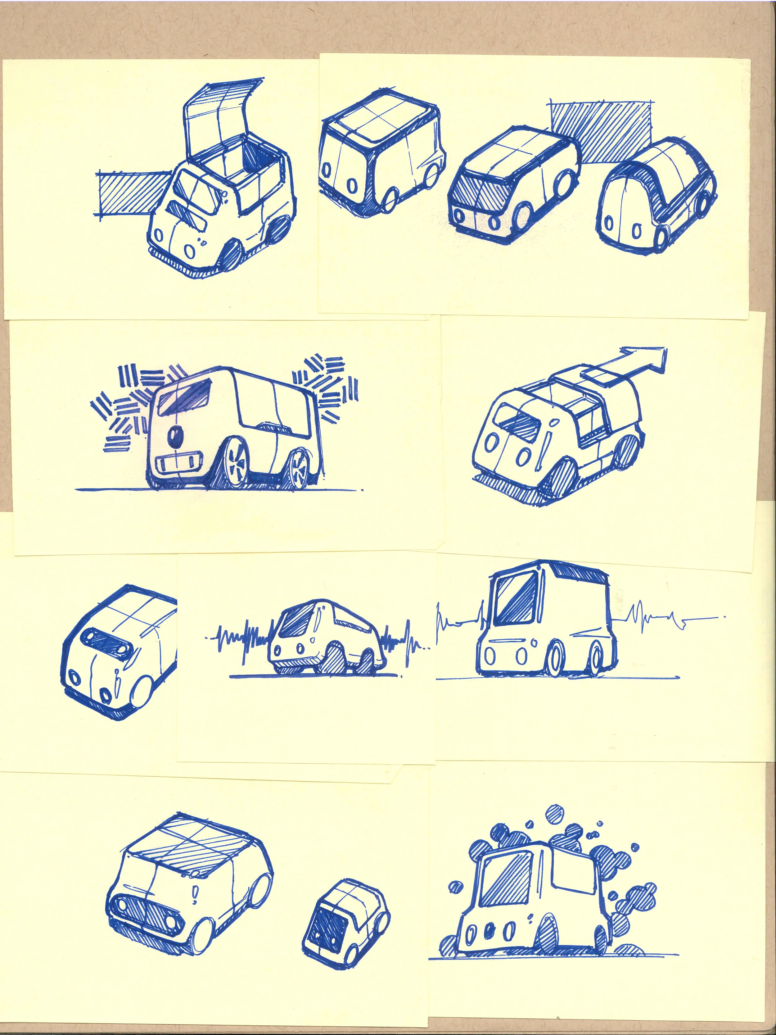 The original design was highly optimized for computer vision and simple mechanical architecture but looks unapproachable, like a military robot. Sharp edges on the front and rear pose a risk for damage on collision.